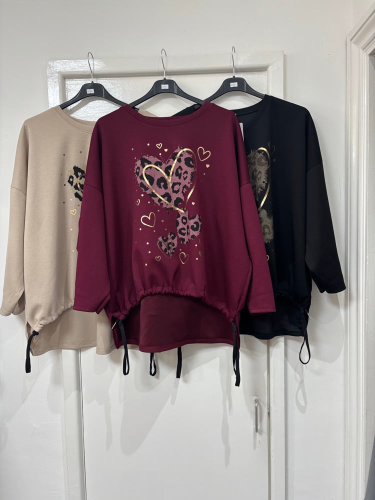 ANIMAL PRINT HEARTS DRAWSTRING TOP