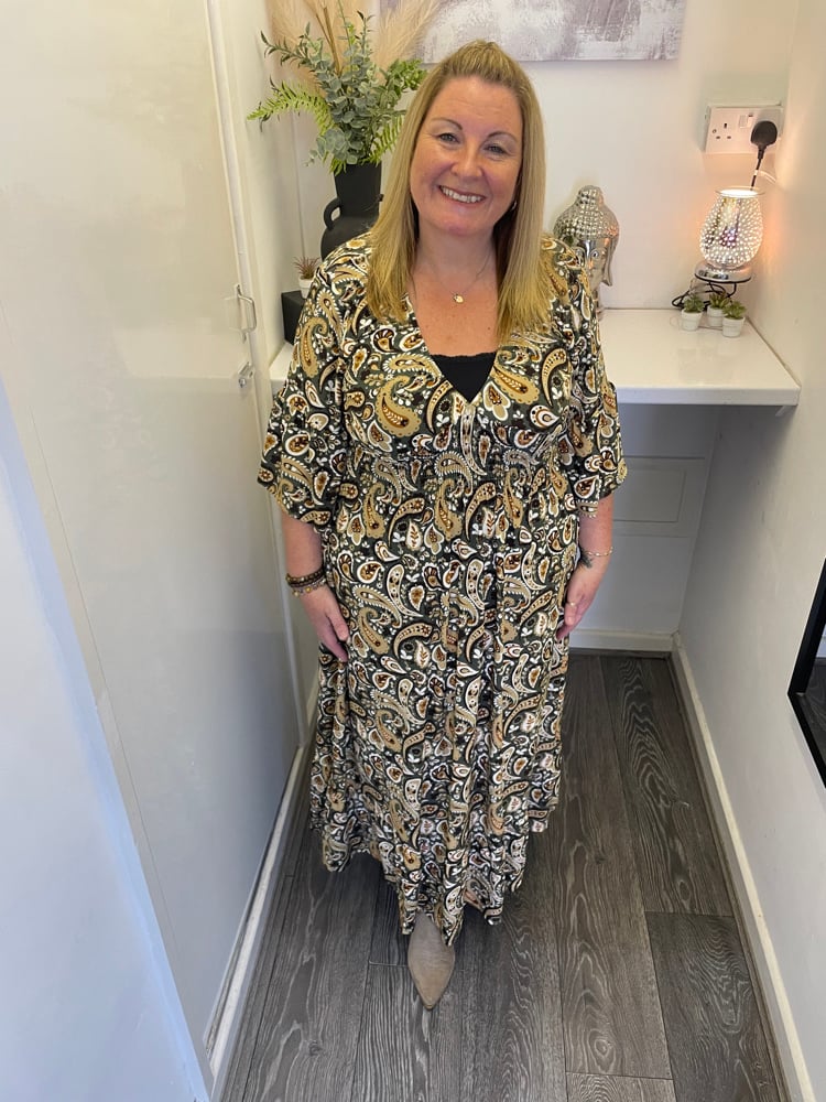 BOHO PAISLEY PRINT V-NECK STRETCH DRESS