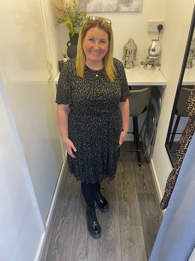 FLUTTER SLEEVE ROUND NECK ANIMAL DRESS