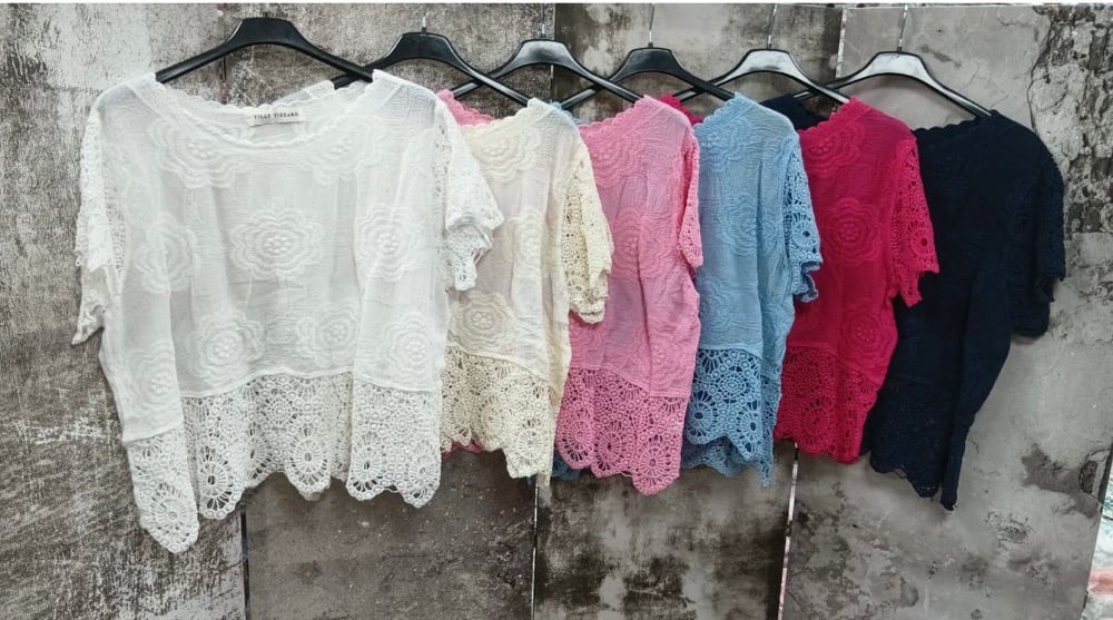 Rose detail crochet short sleeve top
