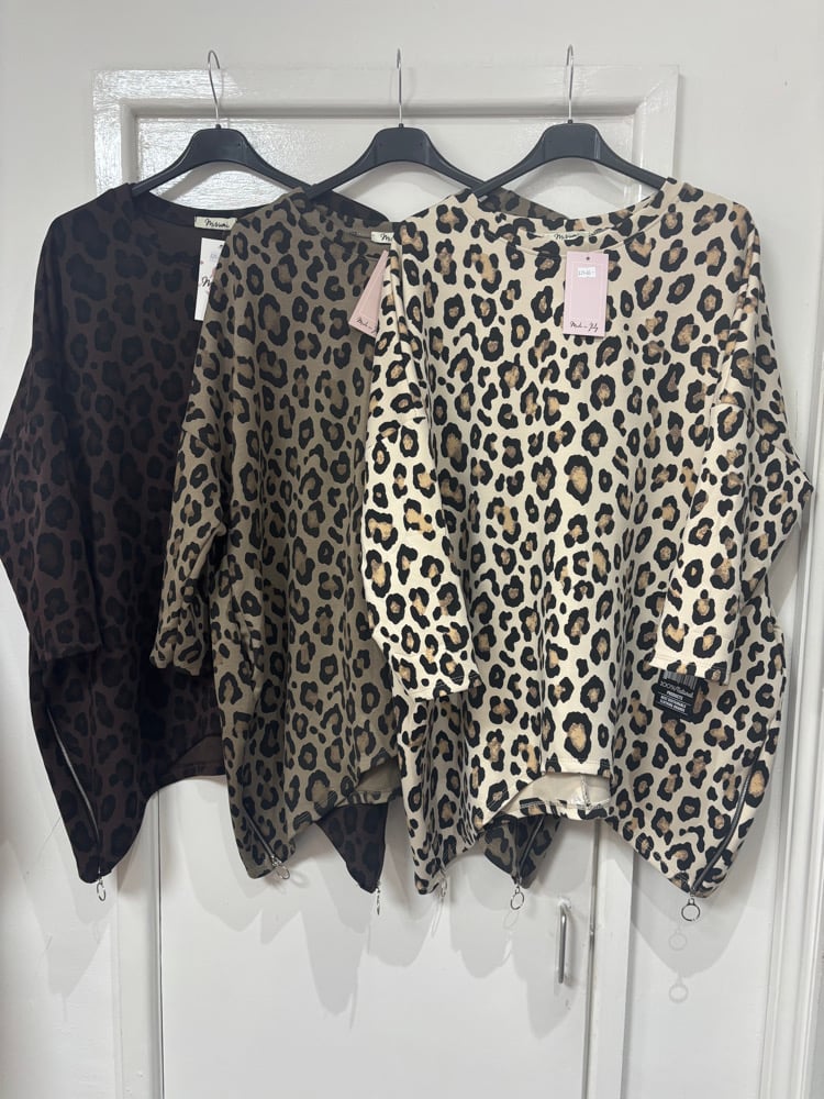 LEOPARD PRINT SIDE ZIP SWEATSHIRT