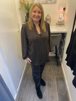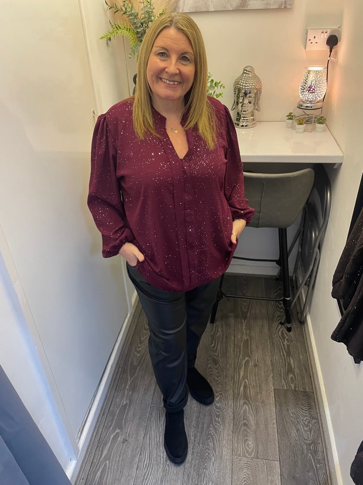 METALLIC GLITTER COLLARLESS V-NECK BLOUSE