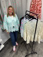 broderie anglaise, crouchet tie front top